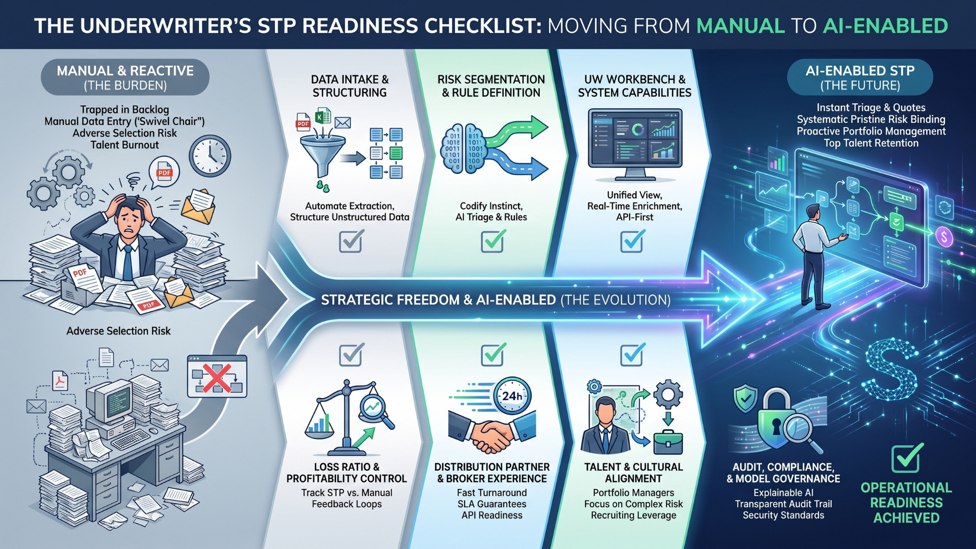 To achieve Strategic Freedom and protect your talent pool, you must evolve. Use this comprehensive checklist to determine your operational readiness for Straight-Through Processing (STP), Automated Submission Intake, and the deployment of a modern UW Workbench.